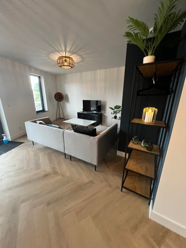 Open indeling met veel lichtinval, moderne keuken voorzien van inductiekookplaat, afzuigkap, koelkast met vriesvak, vaatwasser en combimagnetron. De woonruimte is stijlvol ingericht met een bank, eettafel en sfeervolle accenten.