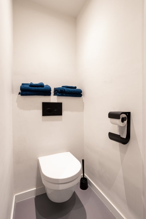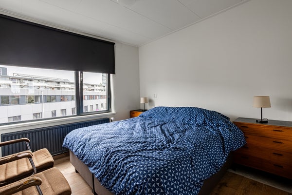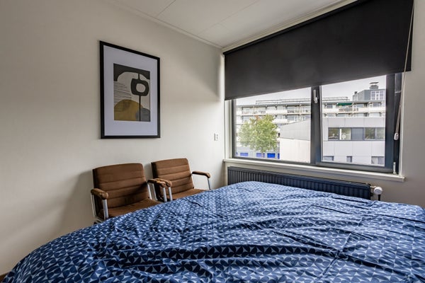 Het appartement beschikt over twee slaapkamers — een hoofdslaapkamer met tweepersoonsbed en een tweede kamer die ideaal kan worden gebruikt als werk- of logeerkamer.