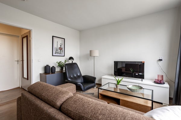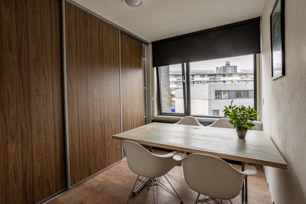 Bij binnenkomst stap je in de lichte woonkamer, die dankzij de grote raampartijen en moderne inrichting een warme en open sfeer heeft. De woonkamer is voorzien van een comfortabele zithoek, eethoek en biedt toegang tot het balkon met uitzicht over de groene straat.