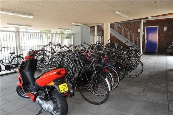 Vanuit de gezamenlijke entree kun je de binnenplaats en de trap bereiken. Het intercomsysteem, overdekte fietsenstalling en brievenbussen zijn hier ook te vinden.