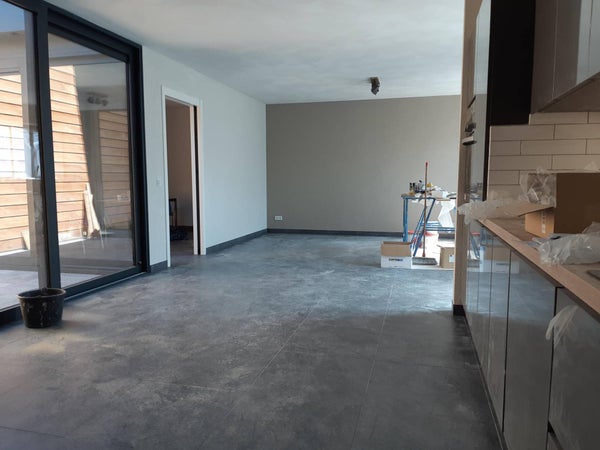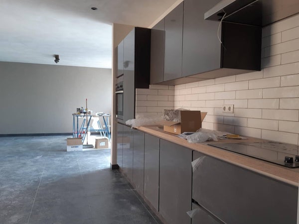 De woon-eetkamer (ca. 38m2) beschikt over een compleet nieuwe open keuken met de volgende inbouwapparatuur: afzuigkap, kookplaat, vaatwasser, koelkast en combimagnetron.