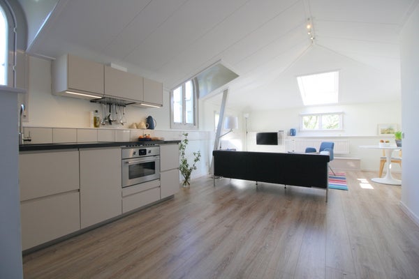 Door de hoge plafonds en fraaie dakconstructie heeft deze studio een zeer prettige woonsfeer. Moderne, strakke keuken die de woonkamer splitst van het slaapgedeelte. De keuken is voorzien van vaatwasser, oven, magnetron, 4-pits inductiekookplaat met afzuigkap en koelkast met diepvriesvak. Prettig slaapgedeelte met tevens veel lichtinval. Nette badkamer uitgerust met douche en wastafelmeubel. Het toilet is ideaal apart gesitueerd.