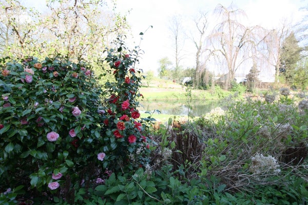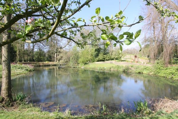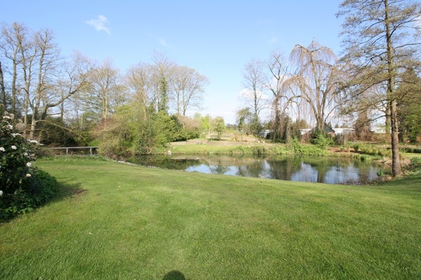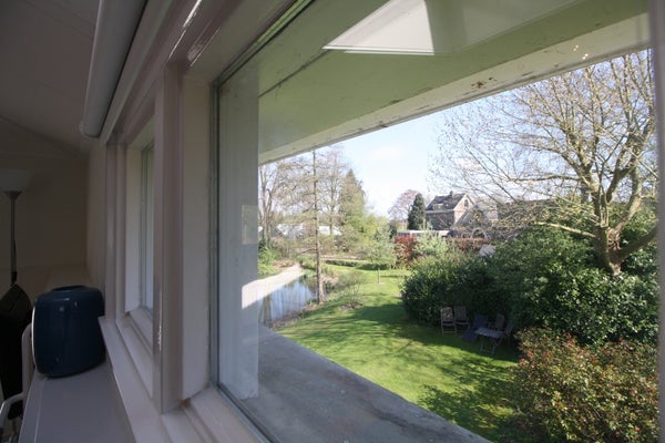 Het uitzicht vanuit de studio is magnifiek: op veel groen, de vijver en de bijzonder grote tuin. In overleg kan er gebruik worden gemaakt van de prachtige tuin.