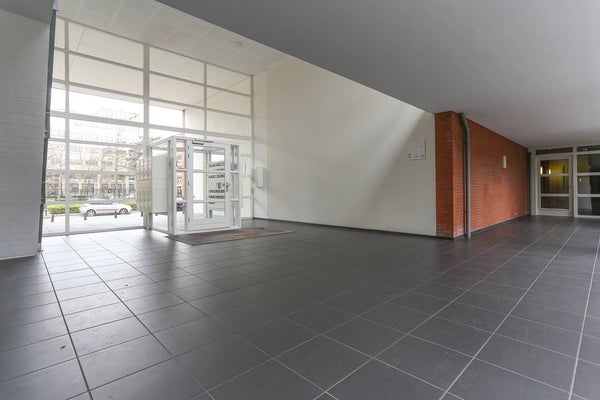 Je komt binnen in de centrale entree/hal met intercom, trappenhuis en liften.