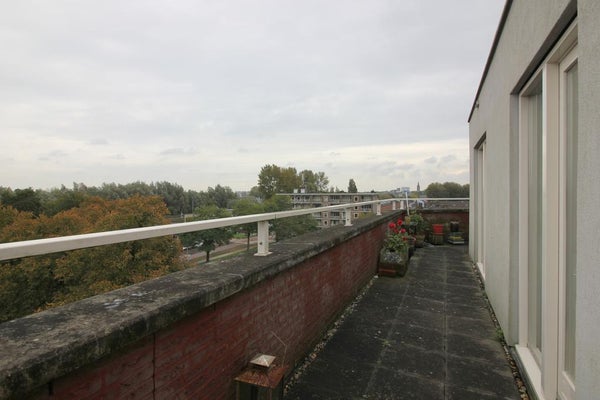 Binnenkomst in de centrale hal, van waaruit alle vertrekken te bereiken zijn. De ruime woonkamer beschikt over een grote raampartij en is ingedeeld in een zit- en eetgedeelte. De woonkamer biedt toegang over het dakterras van maar liefst 28 m² welke een fantastisch uitzicht over de stad Utrecht biedt.