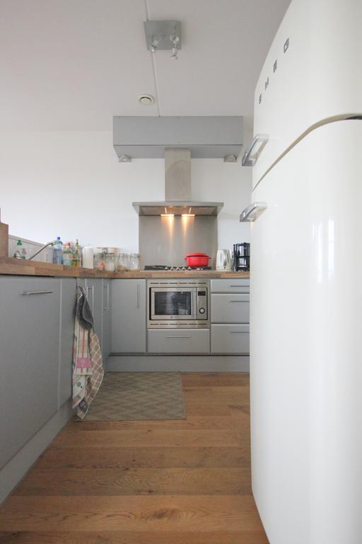 De keuken is tevens in de woonkamer gelegen en beschikt over alle wenselijke inbouwapparatuur, te weten vaatwasser, combimagnetron, gaskookplaat, afzuigkap en koelvriescombinatie. In de keuken is ook de berging met wasmachine-aansluiting te vinden.