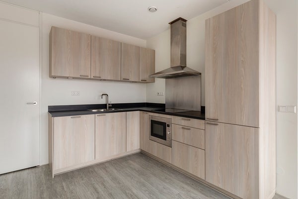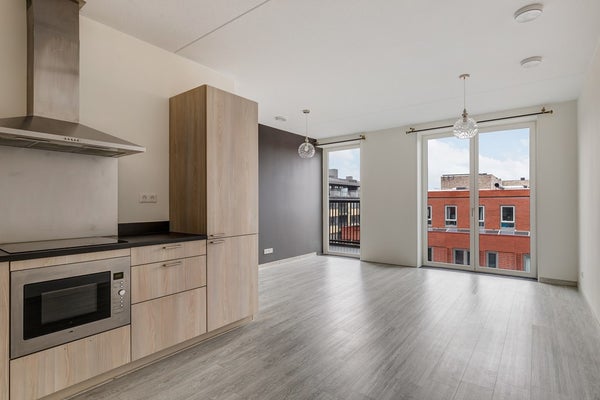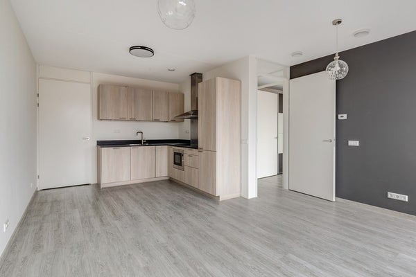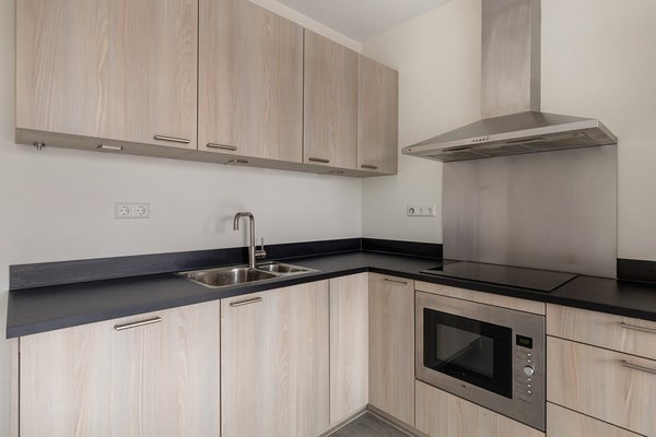 De slaapkamer is ruim opgezet en beschikt over een kledingkast die achterblijft. Vanuit de slaapkamer heb je toegang tot het balkon. Ook de lichte woonkamer biedt toegang tot deze buitenruimte. Dankzij de grote ramen is de woonkamer prettig licht en vormt deze samen met de open keuken een fijne leefruimte.