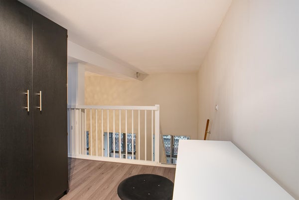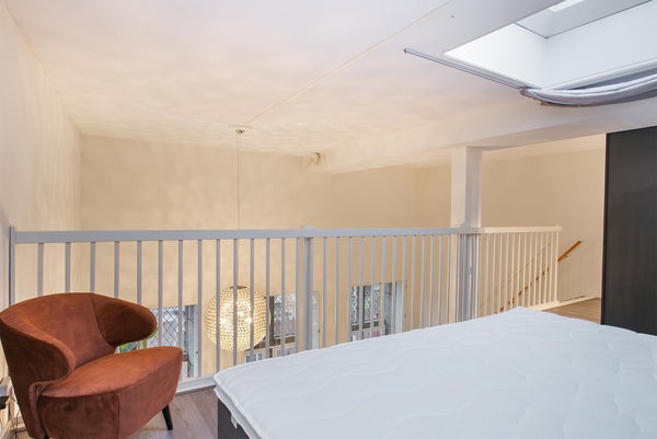 De originele hoge ramen zorgen ervoor dat zowel de woonkamer als de vide verdieping veel daglicht genieten en geven een ruimtelijk gevoel. De woning is zeer ruimtelijk door het hoge plafond en is voorzien van een nette laminaatvloer in de woonkamer en op de vide verdieping. De badkamer heeft een douche, wastafel, toilet en wasmachine aansluiting. De slaapkamer is ruim van opzet en heeft voldoende ruimte voor een tweepersoonsbed, kasten en een bureau.