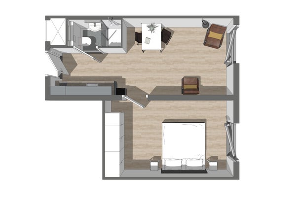 - Mooi appartement van 36m2 met eigen woonkeuken, badkamer en slaapkamer.