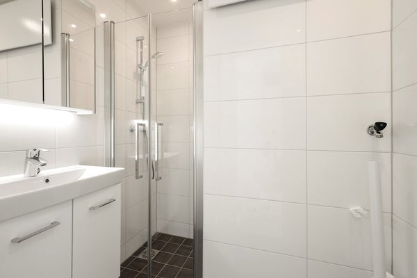 Algemene entree met intercomsysteem en postbussen. Via de parkeerdek bereikt u de entree van het appartement, de trap, of de lift naar de eerste verdieping. De hal geeft toegang tot alle kamers. Heldere woonkamer met toegang tot het balkon, aparte gloednieuwe keuken met inductiekookplaat met afzuigkap, combimagnetron/oven, vaatwasser en koelkast/vriezer. Er zijn twee slaapkamers aanwezig. De moderne badkamer is voorzien van een douche, wastafel met spiegel, en een wasmachine-aansluiting. Apart toilet met wastafel, toegankelijk vanuit de hal.