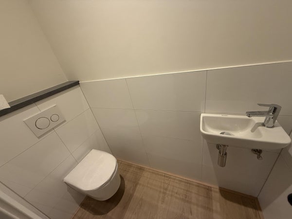 Vanuit de hal bereikt u de lichte en ruime woonkamer met vele grote ramen, de ruime woonkamer beschikt over voldoende ruimte voor een eet- en een zitgedeelte. Aan de woonkamer grenst het balkon, gelegen op het Zuid-Oosten. De moderne keuken (2025) beschikt over inbouwapparatuur, o.a.: vaatwasser, inductie kookplaat en vries/koel combinatie. Ook treft u op deze verdieping het separate toilet.
