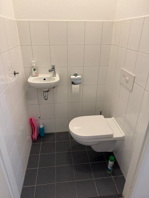 Bij binnenkomst van het appartement tref je aan de rechterzijde de inpandige berging, de moderne badkamer is voorzien van inloopdouche, wasmachineaansluiting en de dubbele wastafel. Tevens tref je in de hal een separaat toilet.