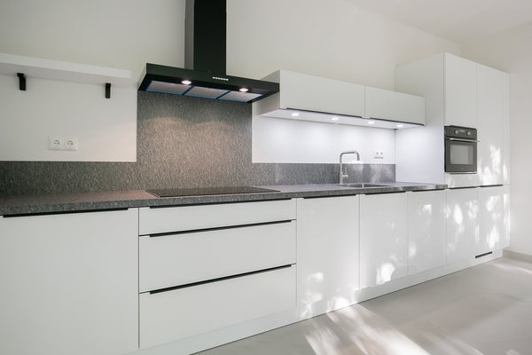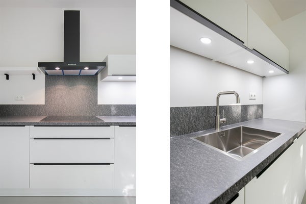 U komt het appartement binnen in de royale hal. De hal bied toegang tot de technische ruimte, woonkamer en slaapkamer. Vanuit de woonkamer komt u in de keuken. Door het gehele appartement is een zeer nette gietvloer aangebracht. De woonkamer komt uit in een mooie en lichte open keuken. Deze is voorzien van wasmachine, koelkast en combimagnetron. De dubbel openslaande deuren geeft een nog ruimtelijker gevoel.