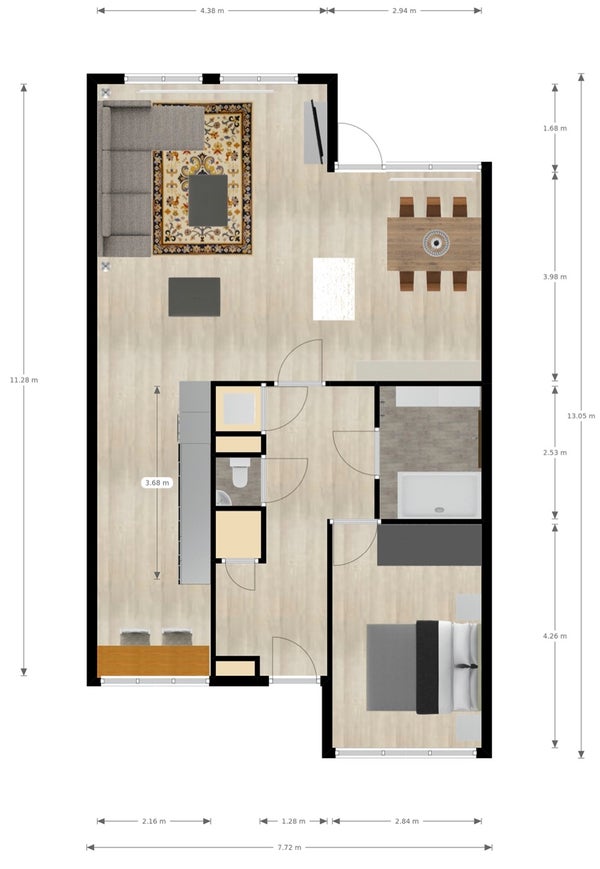 - Oplevering: gestoffeerd, hele appartement is voorzien van een mooie laminaat vloer en rol/vouw gordijnen.