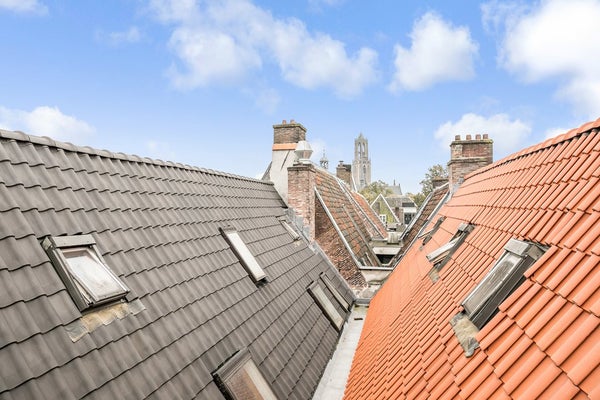 Dit indrukwekkende en sfeervolle 4-kamer appartement is gelegen in de kapverdieping. Het bestaat uit twee woonlagen, met een grote woonkamer met open keuken en haard, twee slaapkamers én een dakterras met een ultiem stadsgezicht met directe kijk op de Dom.