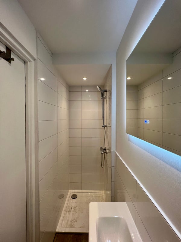 De badkamer is uitgerust met een aparte douche, wat zorgt voor extra comfort en gebruiksgemak in de ochtendspits.