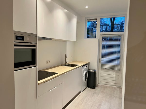 De keuken is voorzien van moderne inbouwapparatuur en zorgt voor optimaal kookcomfort. Deze keuken is recentelijk geïnstalleerd en combineert functionaliteit met een strakke uitstraling.