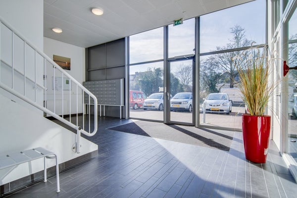 Lichte en ruim opgezette entree met bellentableau, brievenbussen, lift en trapopgang.