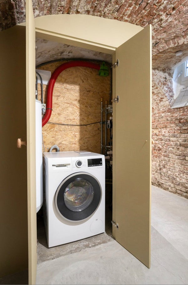 Rechts van de keuken is een praktische opbergruimte voor wijn, ideaal wanneer u gasten ontvangt. Achter de keuken ligt de hal met het separate toilet, de slaapkamer en de badkamer, welke is voorzien van een inloopdouche en een ruim wastafelmeubel. In de hal bevindt zich daarnaast veel opbergruimte én de wasmachine.