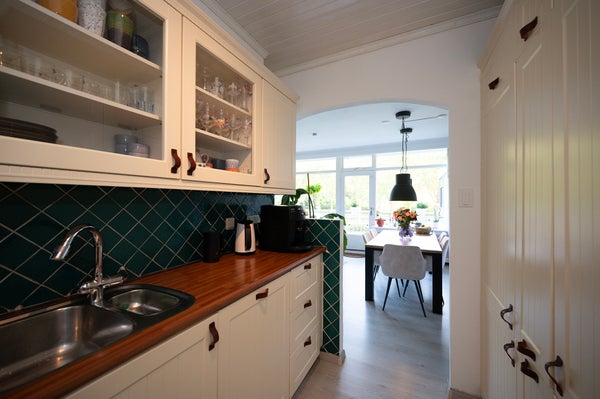 Via de hal met garderobe komt u in de sfeervolle woonkamer, ingericht met een hoekbank, TV en eettafel. Vanuit de woonkamer heeft u toegang tot het eerste balkon. De halfopen keuken is uitgerust met een keramische kookplaat met afzuigkap, farmhouse oven, koel- en vrieskast en veel kastruimte.