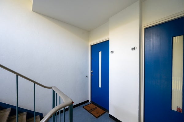 Gemeenschappelijke entree met bellentableau, intercominstallatie en brievenbussen. Vanuit hier bereikt u het trappenhuis, welke toegang geeft tot de woning.