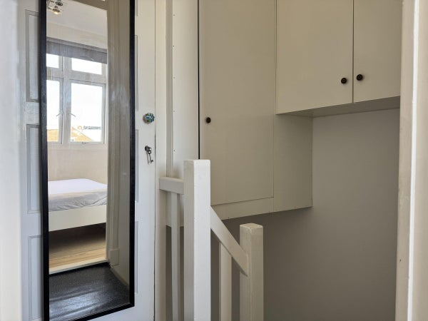 Via de trapopgang is de overloop op de tweede verdieping te bereiken met toegang tot de tweede slaapkamer.