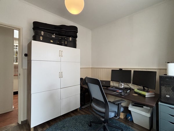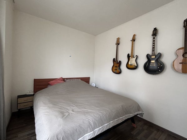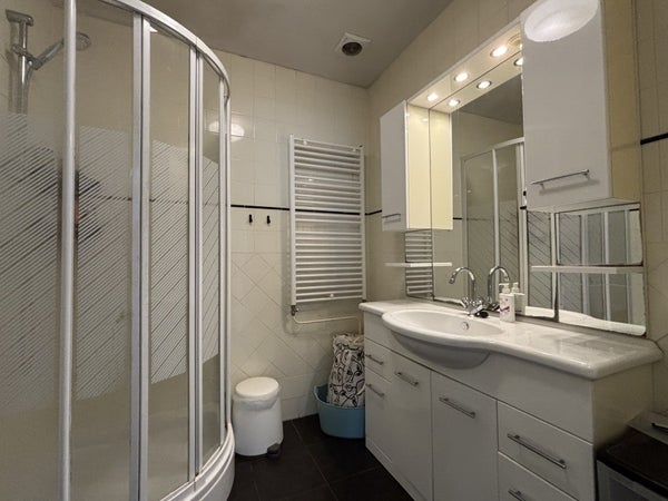 Het appartement beschikt over twee slaapkamers, beide van goed formaat en geschikt als slaap- of werkkamer. De badkamer is netjes uitgevoerd en voorzien van een douche, wastafel en toilet.