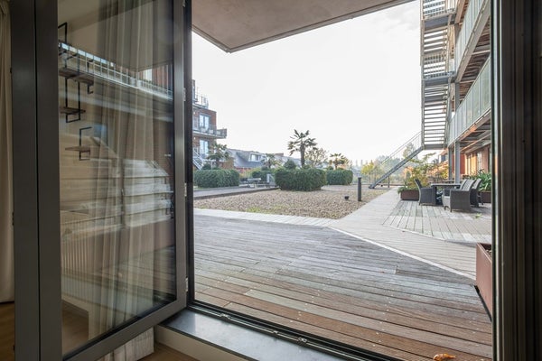 Royaal privéterras van 24 m², perfect om buiten te dineren, te ontspannen of van de zon te genieten.
