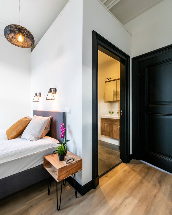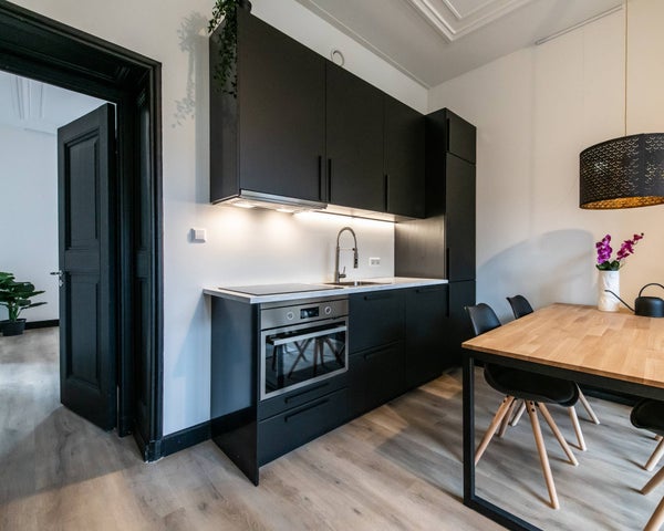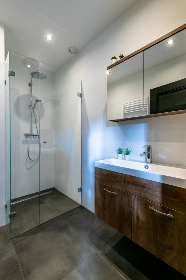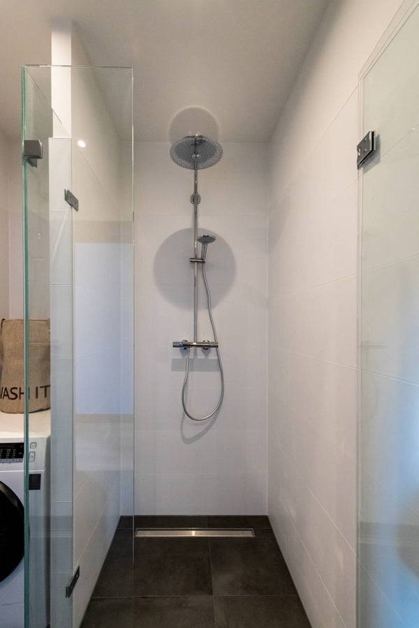 Het appartement is voorzien van een moderne en complete keuken uitgerust met inductie kookplaat, oven, koelkast/vriezer en vaatwasser. De badkamer is voorzien van de klassieke zwart/wit combinatie met grote tegels die goed te onderhouden zijn en helemaal in de tijd van nu. Alle vijf appartementen hebben een eigen fietsen bering.