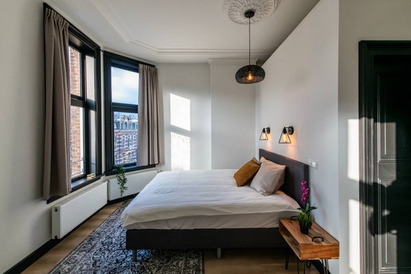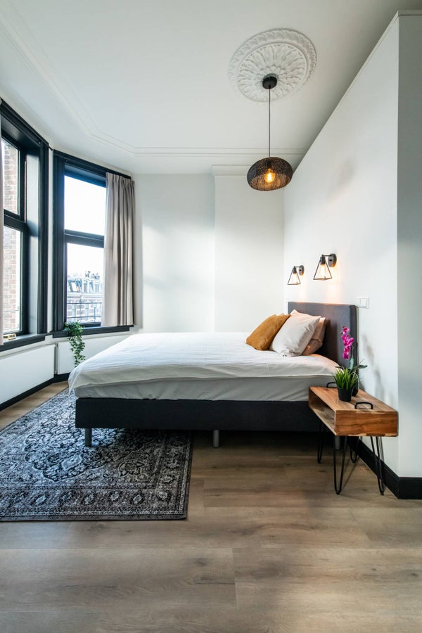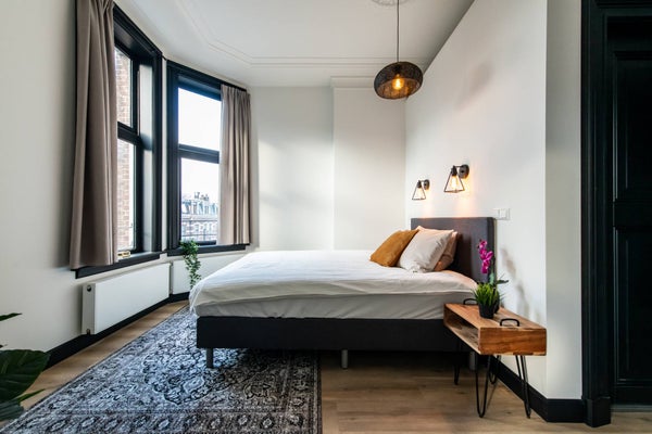 In dit bijzondere Rijks Monumentale pand wordt dit prachtige gemeubileerde 4 kamer appartement met heerlijk balkon aangeboden. De woning is onlangs opgeleverd. Alle originele details zijn bewaard gebleven maar volledig uitgerust met een zeer luxe keuken, mooie vloer en badkamer. Tevens is het houtwerk in de kleur zwart een lust voor het oog. Er is in de woning een gashaard aanwezig.