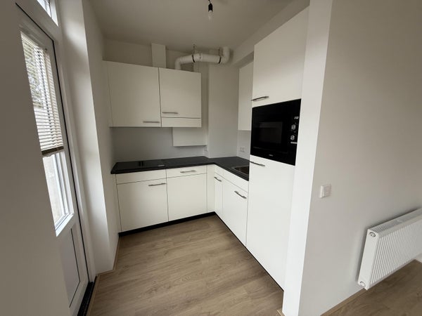 De lichte doorzon woonkamer heeft een mooie PVC vloer. Aan de achterzijde tref je de open keuken en openslaande deuren naar het ruime balkon. De moderne (2025) keuken is van alle gemakken voorzien (inductiekookplaat met geïntegreerde afzuiginstallatie, koel/vriescombinatie, vaatwasser en combi oven/magnetron).