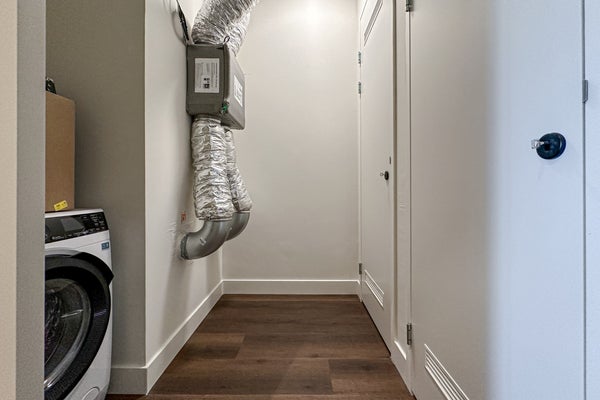 Entree, ruime hal met aan de rechterzijde inpandige berging met meterkasten en wasmachineaansluiting. Aan de linkerzijde is er voldoende ruimte voor een losstaande kapstok. In de hal met vloerverwarming bevindt zich verder een toilet met fonteintje.