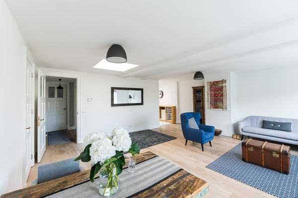 Bij binnenkomst zult u versteld staan van het stijlvolle interieur, waar authentieke details harmonieus samengaan met moderne afwerkingen. De ruime woonkamer baadt in natuurlijk licht dankzij de grote ramen, die tevens een prachtig uitzicht. Hoge plafonds en karakteristieke balken geven de woning een warme en uitnodigende sfeer.