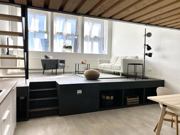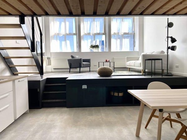 Dit appartement is een fantastisch loft appartement waarbij de ruimte verdeelt is over 3 niveau's.