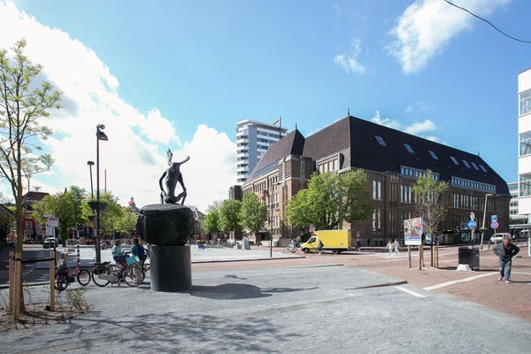 Entree, hal, toilet met fontein, toegang tot de ruime en lichte woonkamer voorzien van 3 grote ramen met prachtig uitzicht op "de Neude".