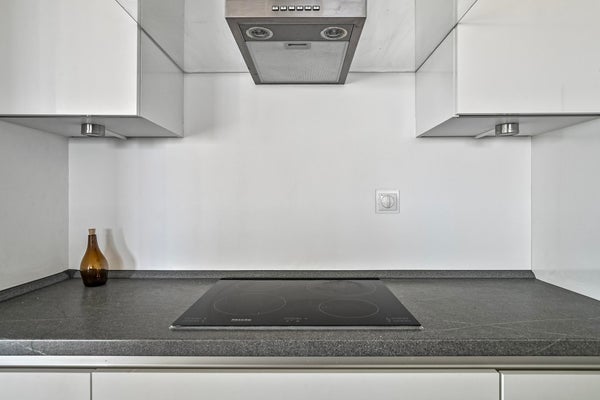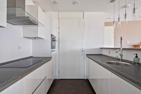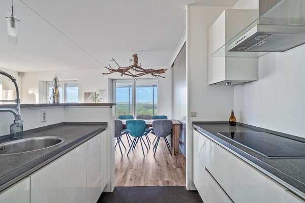 - Open keuken met inductie, afzuigkap, koelkast/vriesvak, vaatwasser en oven met magnetronfunctie