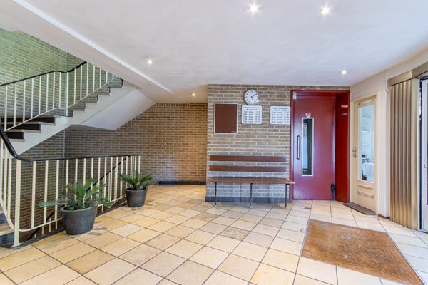 Afgesloten entree met intercom, ruime hal met lift en trappenhuis. In de onderbouw bevindt zich een eigen berging.