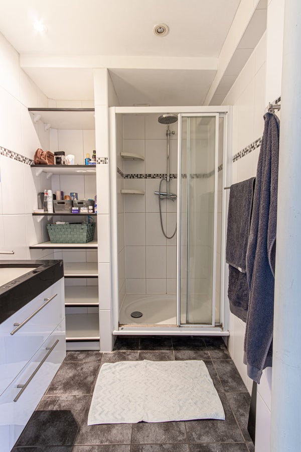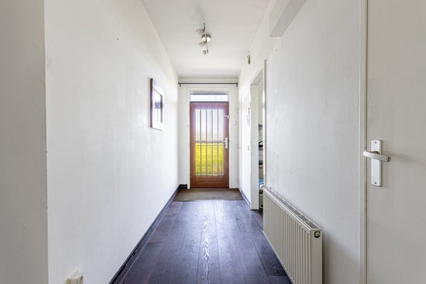 Entree met garderoberuimte en meterkast. Via de gang bereik je het separate toilet met fonteintje en de moderne badkamer met wastafelmeubel en douchecabine. De ruime woonkamer is heerlijk licht dankzij grote raampartijen aan twee zijden en biedt toegang tot een zijkamer die ook fungeert als wasruimte en toegang geeft tot een kleine bergruimte/inpandig balkon op het oosten. Deze ruimte is voorzien van aansluitingen voor wasmachine en droger, en biedt tevens plaats aan een vriezer en de boiler. De woonkamer is in 2020 voorzien van een nieuwe laminaatvloer.