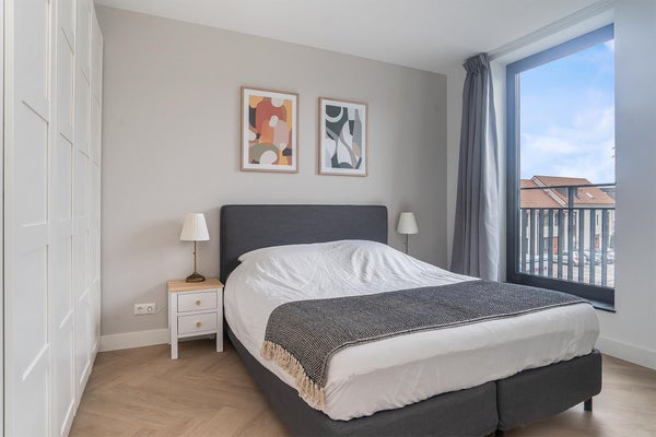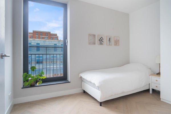 Aan de achterzijde van het appartement bevinden zich 2 slaapkamers. De slaapkamers zijn beiden voorzien van gestuukte wanden. De badkamer is voorzien van een douche, ligbad en wastafelmeubel. Het geheel is tot aan het plafond betegeld en heeft een fraaie afwerking.