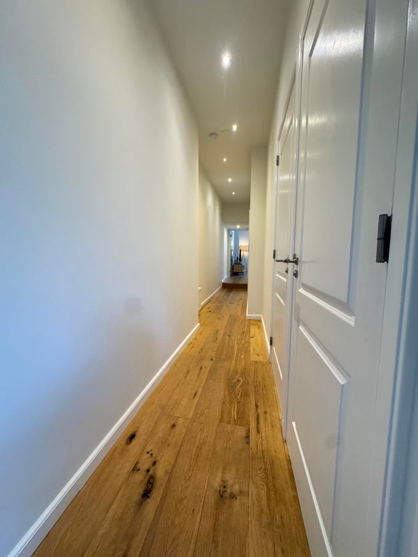 Entree, ruime hal. Woonkamer met prachtige houten vloer en open keuken met alle apparatuur en bar. Vanuit de keuken (en hoofd slaapkamer) toegang tot een heerlijke besloten tuin met lounge hoek en de vrijstaande office / hobbyruimte. De hoofd slaapkamer met dubbel bed en kasten heeft openslaande deuren naar diezelfde tuin. Het appartement beschikt over een tweede ruime slaapkamer (met verrassende lichtstraat). Separate laundry met wasmachine en droger en bergruimte. Verder een moderne badkamer met inloopdouche, ligbad en dubbele wastafel. Separaat toilet.
