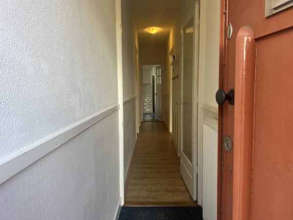 Bij binnenkomst kom je in de hal, die toegang geeft tot het aparte toilet, een handige bergruimte en doorloopt naar de keuken. Vanuit de hal bereik je ook de lichte woonkamer, waar de grote ramen zorgen voor een prettige hoeveelheid daglicht. De woonkamer biedt voldoende ruimte voor zowel een comfortabele zithoek als een ruime eettafel.