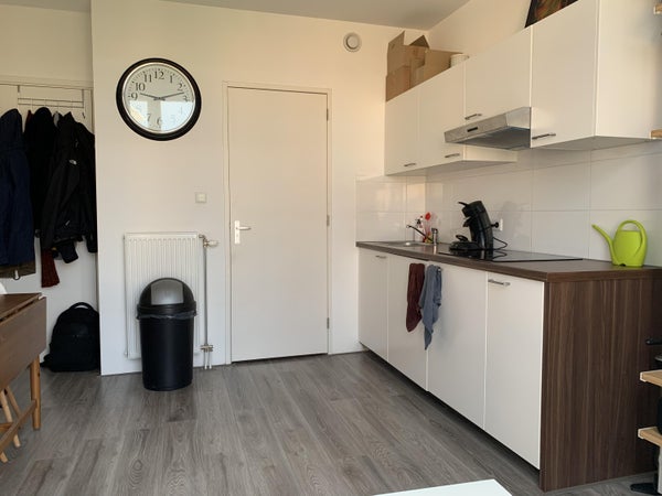Lichte kamer voorzien van een keurige laminaat vloer. Keuken voorzien van 4 pits elektrisch kookplaat, afzuigkap, koelkast met vriesvak. Toegang tot de nette badkamer voorzien van douche, wastafel en toilet.