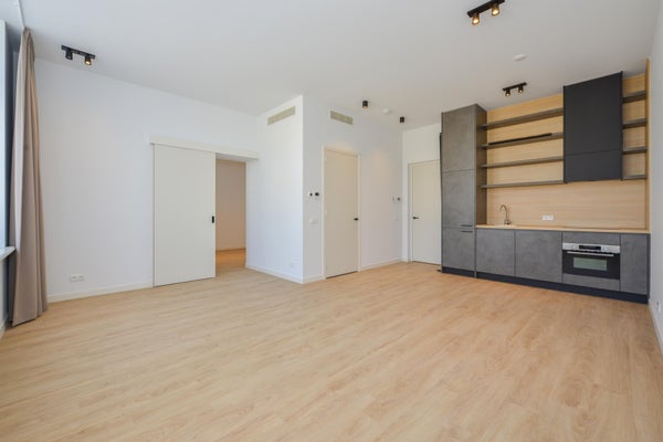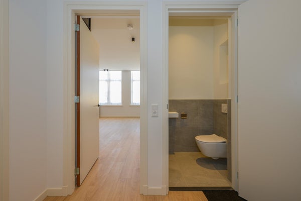 Het appartement is gelegen op de begane grond. Vanuit de centrale entree treed je de woning binnen. Je trekt de deur achter je dicht en hangt je jas op. Vanuit de hal heb je toegang tot de badkamer, een separaat toilet en de woonkamer met open keuken. De maatwerk keuken is voorzien van de nieuwste inbouwapparatuur. De badkamer is voorzien van een inloopdouche, wastafelmeubel en handdoekradiator.
