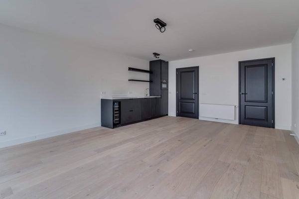 De woning beschikt over twee slaapkamers, ideaal voor stellen of werkenden die een thuiswerkplek nodig hebben. De ruime woonkamer biedt veel lichtinval dankzij de grote ramen aan de voorzijde van het pand en is voorzien van stijlvolle horizontale jaloezieën.