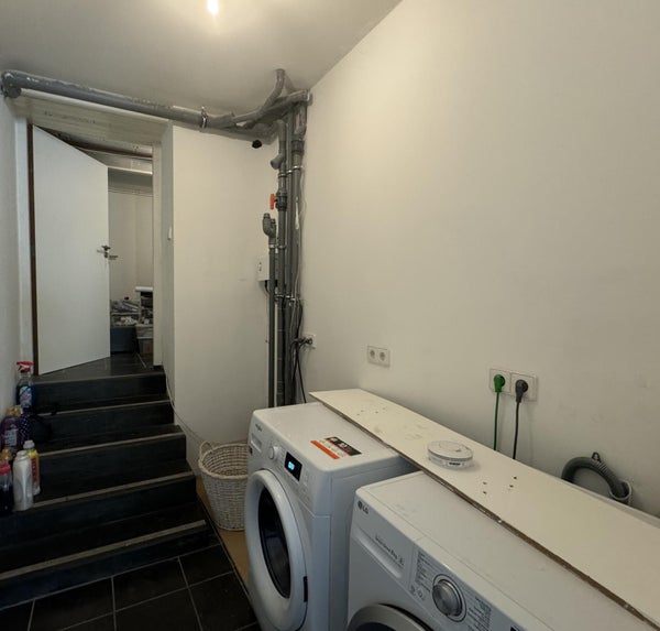 Via de ruime entreehal, die gedeeld wordt met drie appartementen, betreed je de woning. Er is ook een achterom waar je veilig en overdekt fietsen kunt stallen in de gezamenlijke garage.
