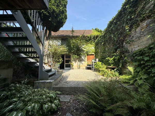 De ruime slaapkamer op de benedenverdieping heeft grote ramen die veel licht binnenlaten. Aangrenzend vind je een ruime badkamer, een berging en een washok. Vanuit de slaapkamer loop je door een schuifraam direct de gezamenlijke tuin in.