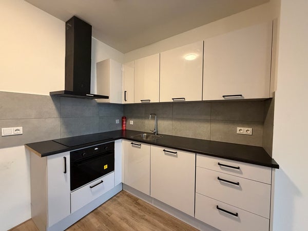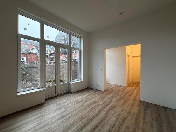 Het appartement bevindt zich op de begane grond en heeft een totale woonoppervlakte van circa 67 m². Je komt binnen via de gemeenschappelijke hal, die toegang geeft tot alle vier de appartementen in het pand. Vanuit de hal stap je direct de woonkamer binnen met een open keuken. De keuken is voorzien van een afzuigkap, koelkast, inductiekookplaat, combi-oven, vaatwasser en vriezer. De badkamer, het toilet en de slaapkamer bevinden zich aan de achterzijde van het pand. De badkamer is uitgerust met een douche en wastafel. Daarnaast beschikt het appartement over een achtertuin.
