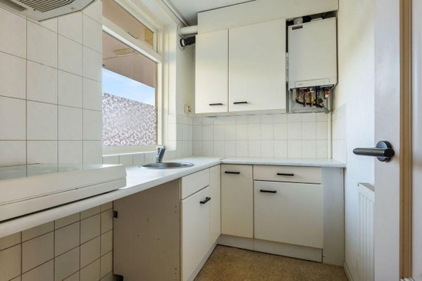 Indeling: entree/hal met intercom, woonkamer, dichte keuken voorzien van gaskookplaat, afzuigkap, koelkast met vrieslade, combi-magnetron, wasmachine-aansluiting, apart toilet, badkamer met douche en wastafel, één slaapkamer met direct toegang tot het balkon.