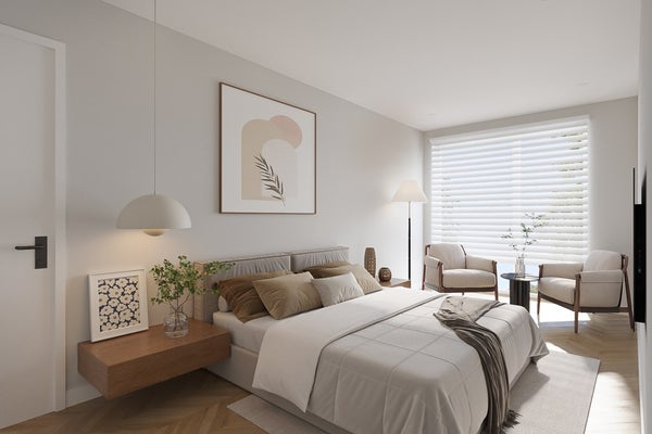 Met een of twee ruime slaapkamers is er ruimte genoeg voor een thuiskantoor, kinderkamer of logeerkamer. Tevens is er een privé buitenruimte – of het nu een balkon, (dak)terras of loggia betreft – biedt een fijne plek om te ontspannen. Afhankelijk van het gekozen woningtype.