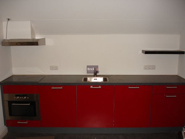 Keuken met keukenblok en aansluitingen voor de wasapparatuur